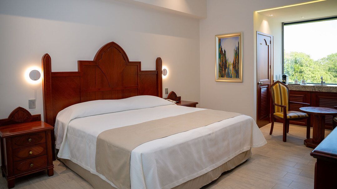1 King Size Bed, has a bathroom with all amenities, AA, telephone, WIFI, a small kitchen area equipped with a coffee maker, minibar, electric grill and microwave.